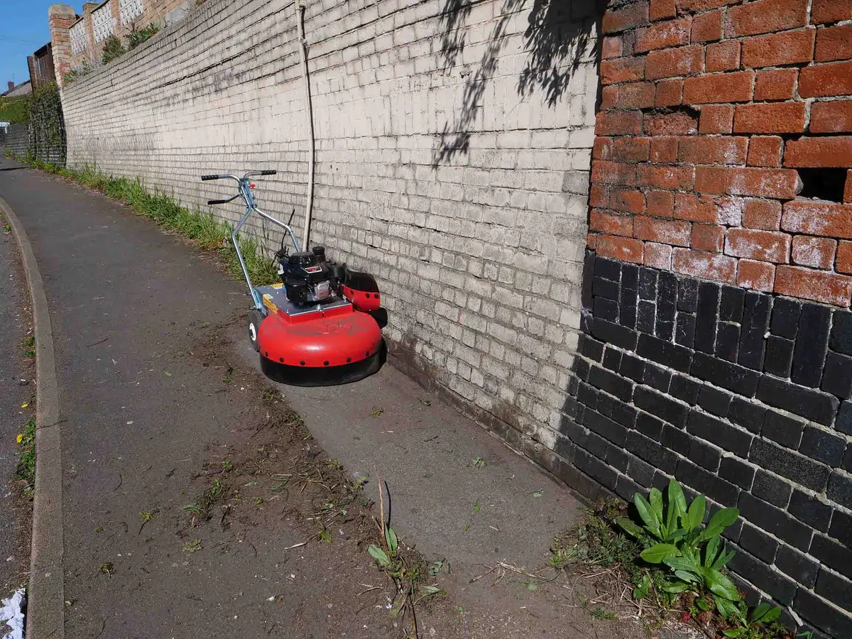Over grown pathways can be quickly redefined by using the WKB660 as a lawn re-edging machine.